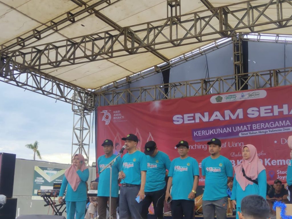 Di samping itu, agenda HAB di Bumi Mina Tani juga tersaji ‘Senam Sehat Kerukunan Umat Beragama’ sekaligus launching Wakaf Uang. Dikatakannya, ‘Senam Sehat Kerukunan Umat Beragama’ berarti menciptakan fondasi persatuan dan kesatuan demi mewujudkan pembangunan. Pasalnya, pembangunan akan lahir diawali dengan umat yang rukun.